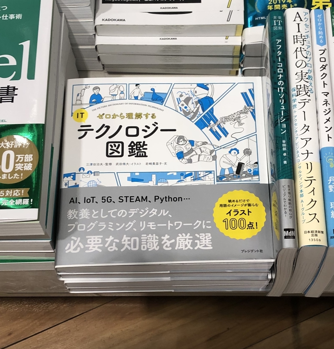 『ゼロから理解するITテクノロジー図鑑』、IT棚にきれいに平積みしていただいています。